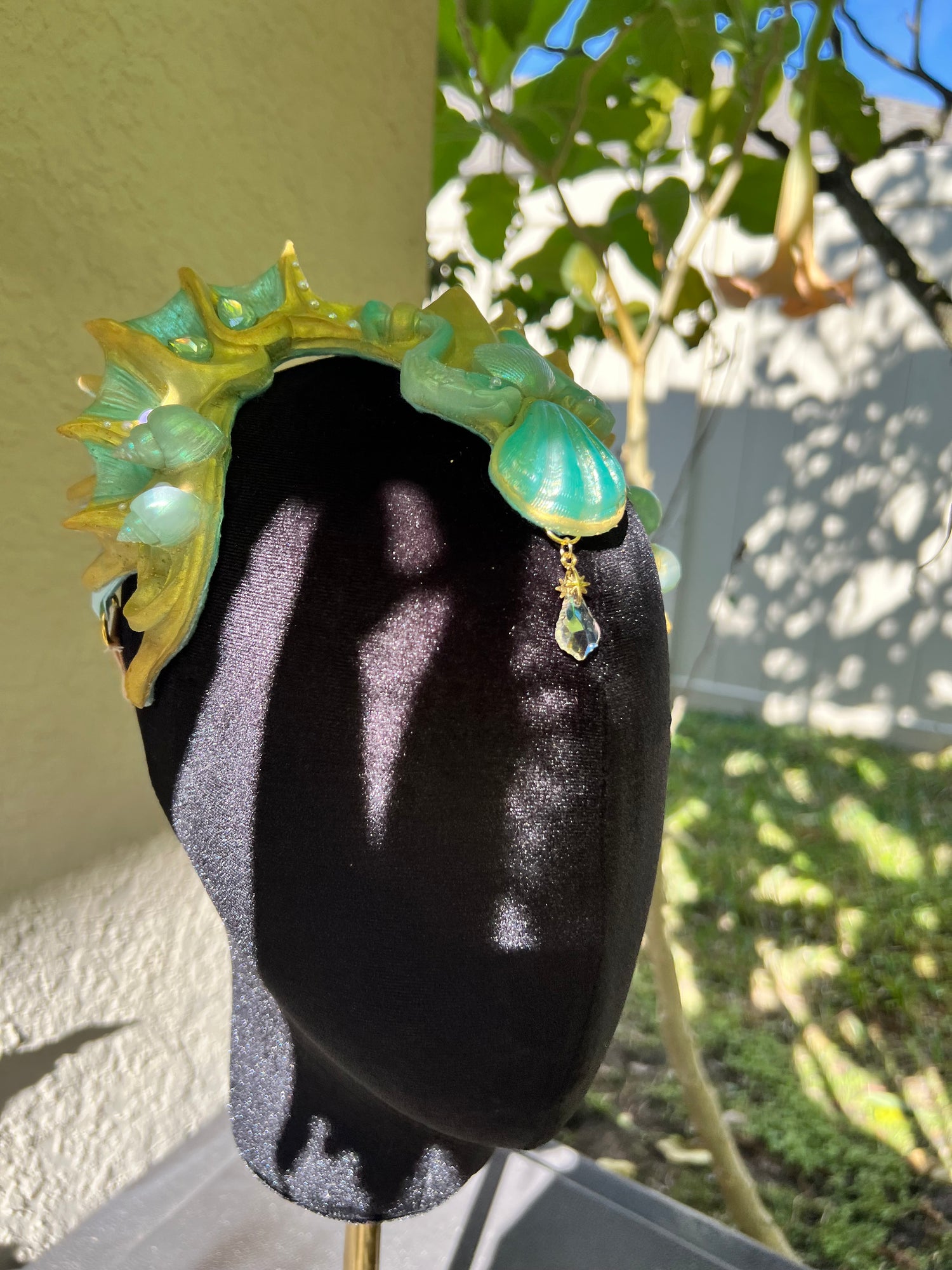 care: once worn in water, rinse with fresh water and dry to the best of your ability. Do not leave in sun or area of high heat. Recommended to keep on mannequin head for storage.