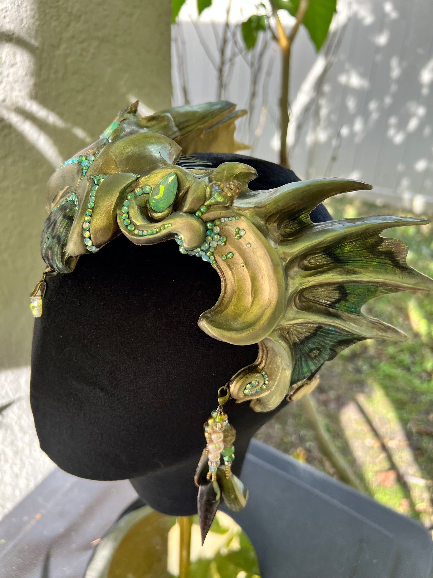 care: dry after every use, there are a few metal components. Do not leave in sun. It is a resin piece and can easily change shape if heated too much. We recommend storing it on a mannequin head