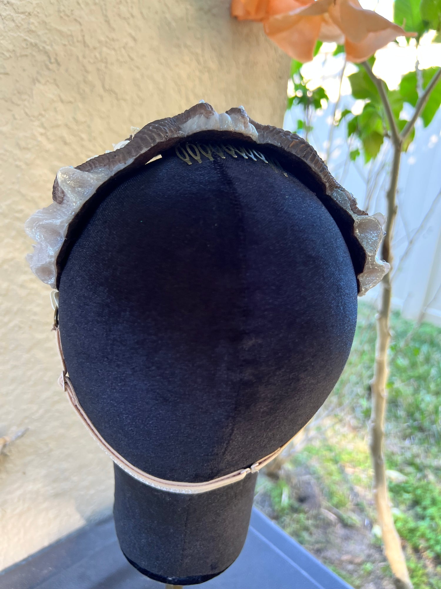 care: dry after every use, there are a few metal components. Do not leave in sun. It is a resin piece and can easily change shape if heated too much. We recommend storing it on a mannequin head